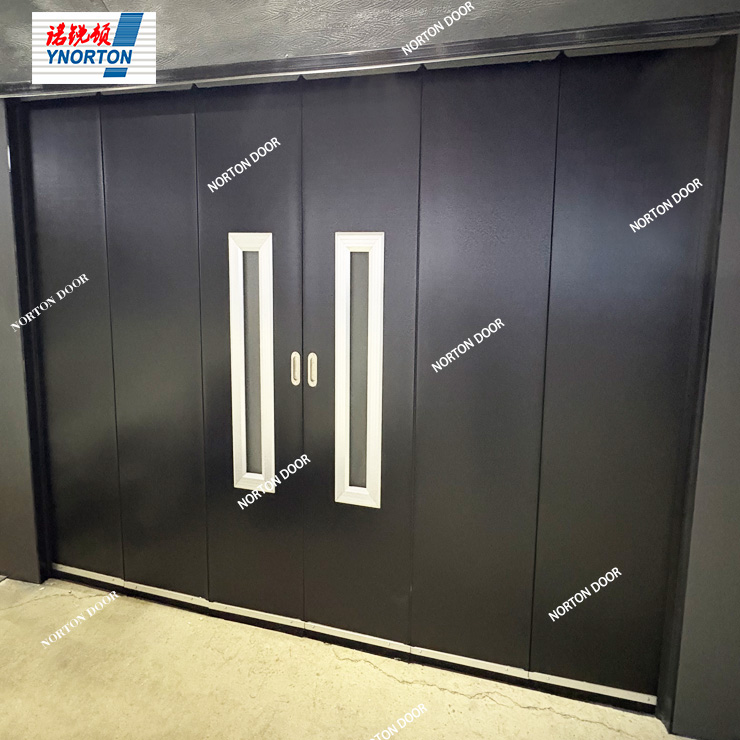 Stranska garažna vrata, ki jih je razvil Norton, sprejmejo stranski mehanizem za odpiranje in zapiranje. Njegova najpomembnejša značilnost je vesoljska učinkovitost, zaradi česar je še posebej primeren za garaže z omejeno višino stropa ali izjemno široko dimenzije. Skladbe so nameščene ob stranskih stenah, kar odpravlja potrebo po nadzemnem odmiku. Enojna vrata lahko dosežejo največjo širino 6 metrov, konfiguracija dvojnih delnic pa se lahko razširi do 12 metrov, ki ustrezajo potrebam parkiranja z več vozili.